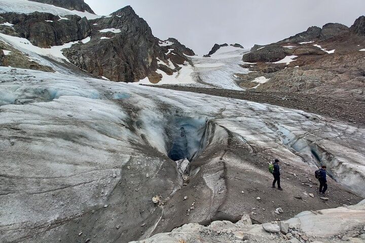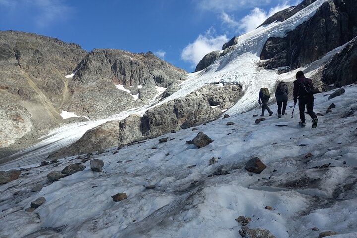 The last part of the trail takes place on high-mountain terrain with a challenging incline that finishes when we get to Tempanos lagoon. If the weather is favorable and if the group of hikers is in good condition, we will go around the lagoon to approach the Vinciguerra glacier and look at its cracks and moulins.